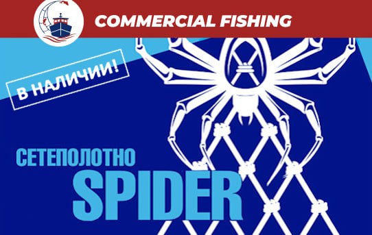 Commercial Fishing предлагает высокопрочные сетные полотна SPIDER из монолески диаметром от 0,20 до 0,70 мм и ячеёй от 30 до 200 мм.